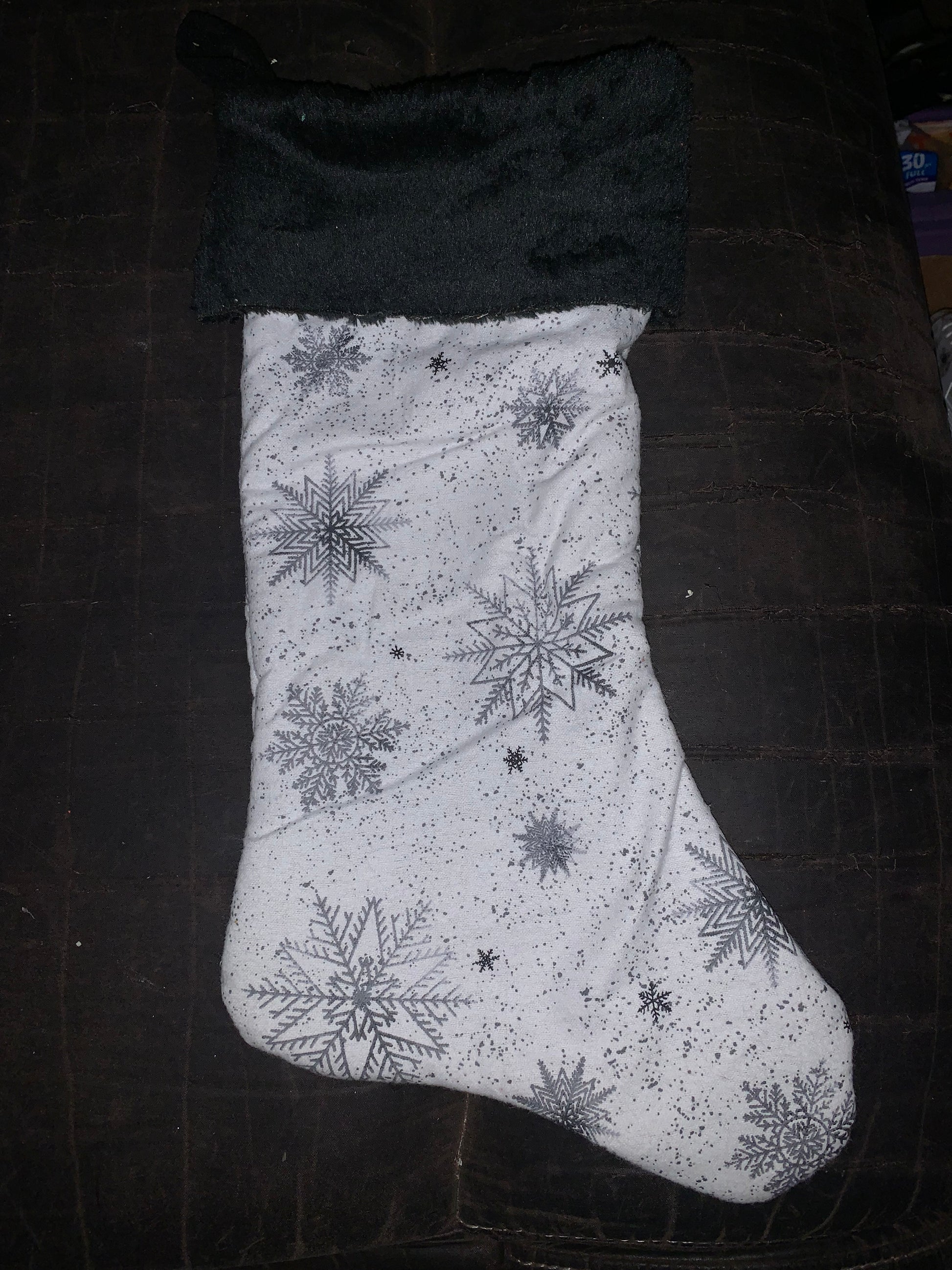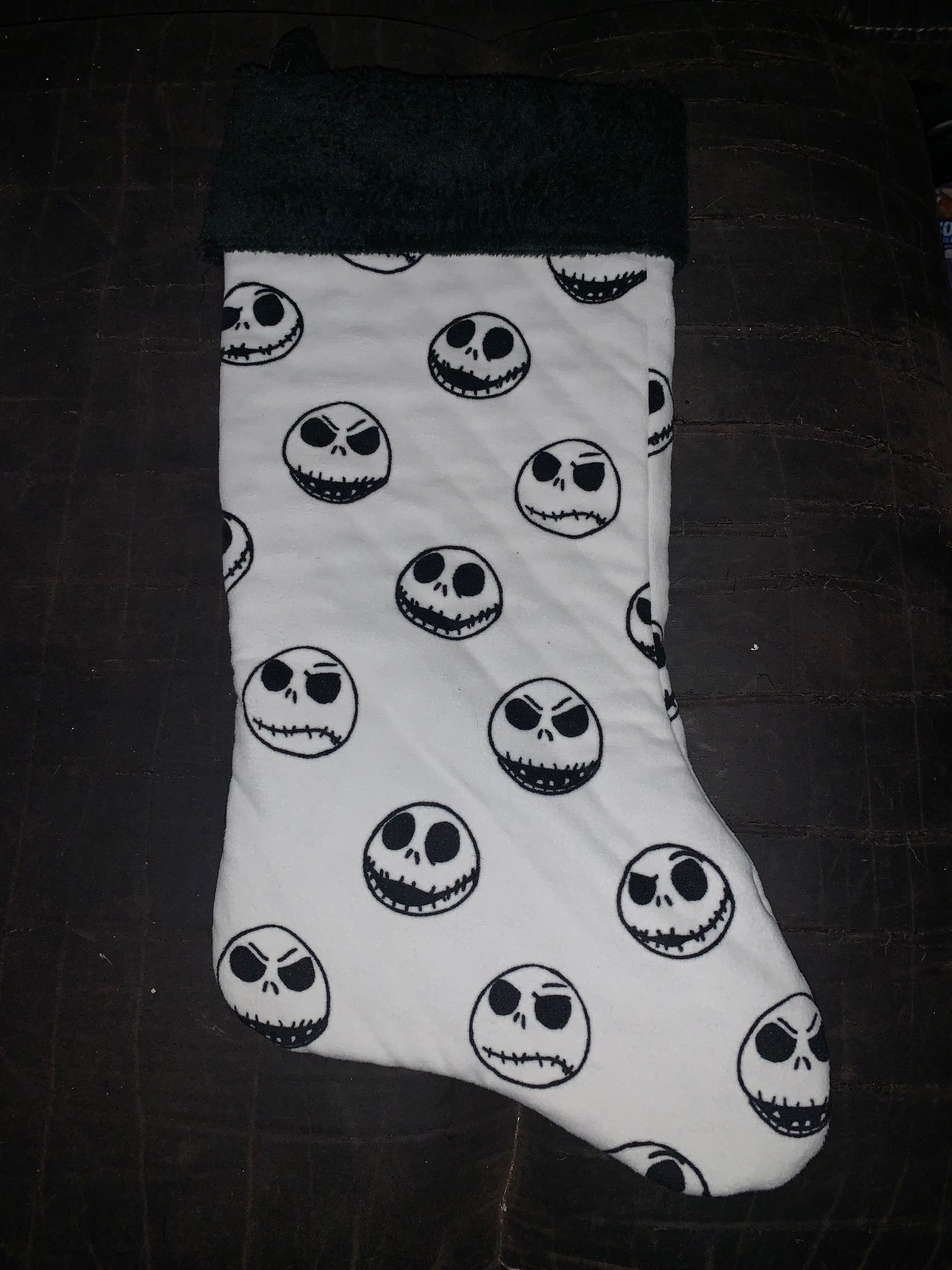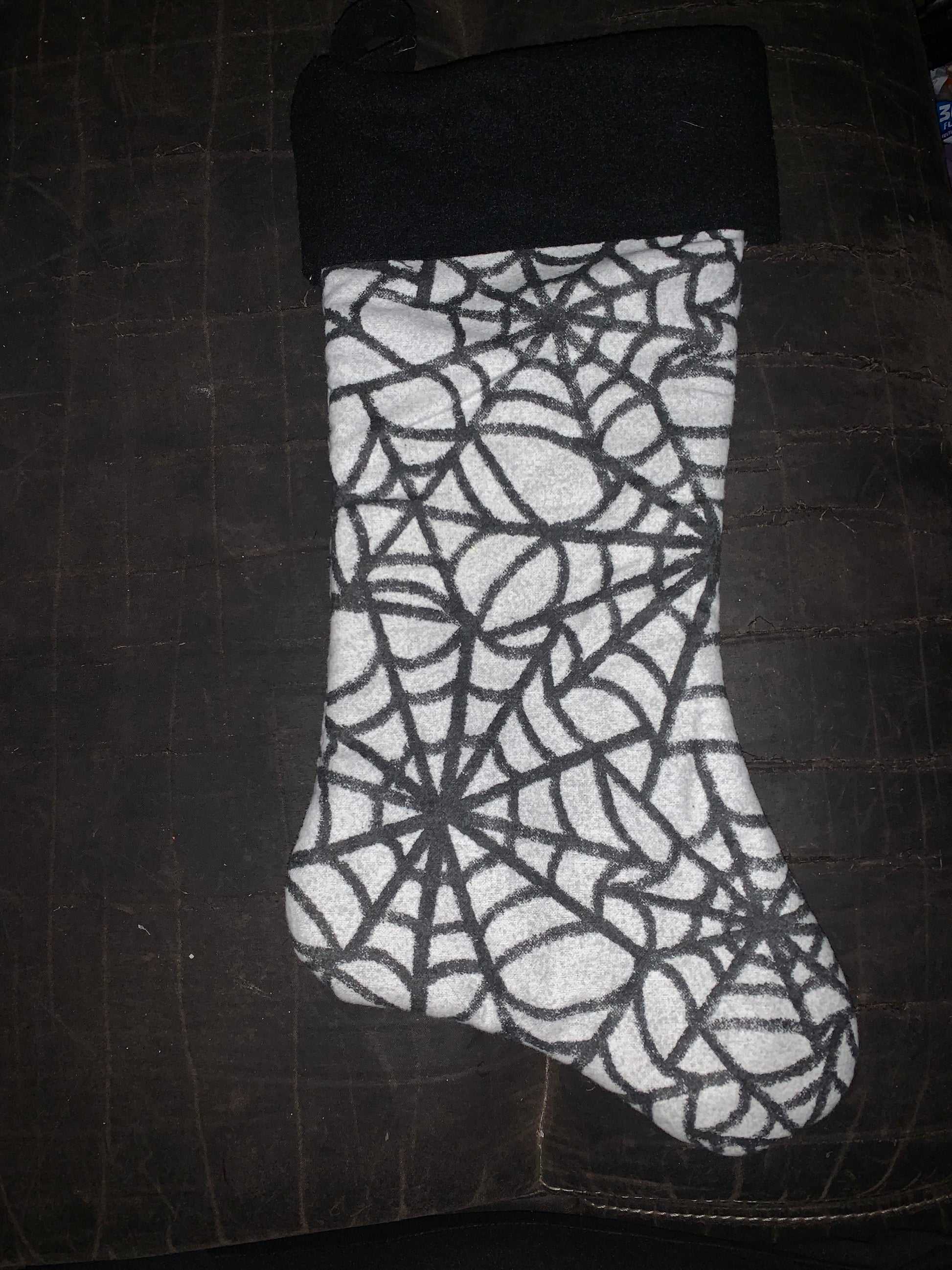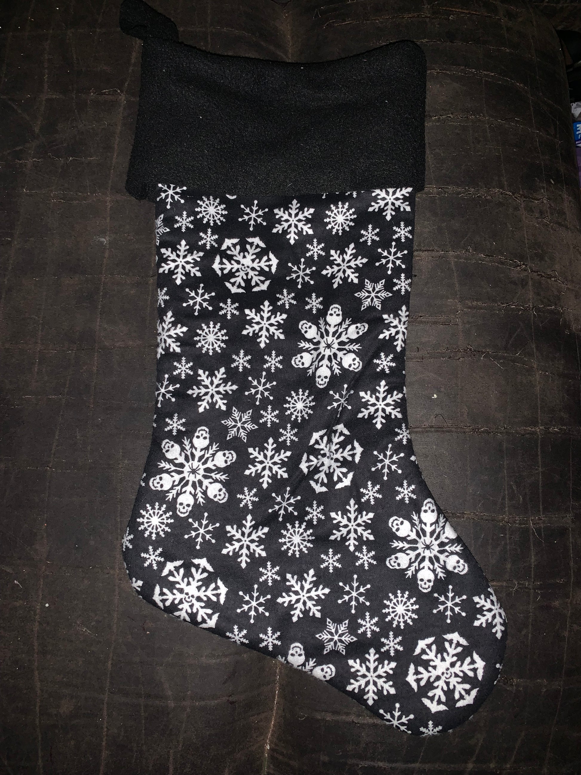 Seasonal spooky holiday stockings. Made from cotton and fleece, lined for thickness. Comes in multiple prints to choose from. Some prints have limited quantities for order available, please email for inquiries. Roughly 7” wide by 18” long